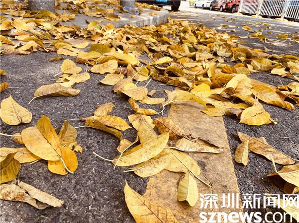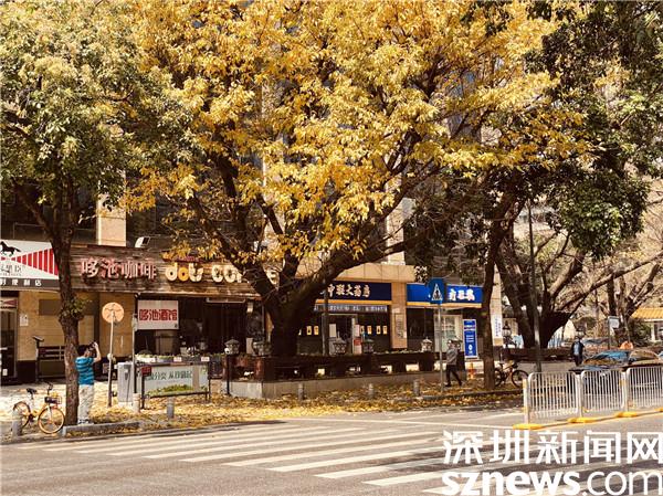 羅湖區(qū)美術(shù)館門前,樹(shù)葉正飄落,行人三三倆倆,頗有“半城春色半城秋”之感。