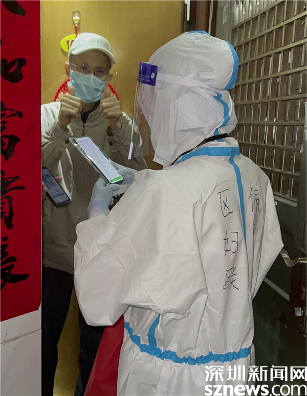 另外組的吳佩霞敲開一戶居民的門,開門的大叔舉起雙手,為她們點(diǎn)贊。點(diǎn)滴溫暖,滿滿能量。