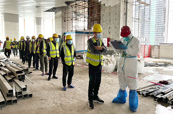 龍信建設(shè)集團(tuán)有限公司仁恒世紀(jì)大廈項(xiàng)目經(jīng)理陳建飛介紹,在保障在安全生產(chǎn)的前提下,公司對(duì)員工進(jìn)行了集中管理,做到員工宿舍和施工地點(diǎn)兩點(diǎn)一線,就餐則采用集中配餐。在員工的管理上,以班組、工種、時(shí)段進(jìn)行分門(mén)別類進(jìn)行管理。“當(dāng)前,項(xiàng)目施工總?cè)藬?shù)為229名,按照‘應(yīng)檢盡檢、不漏一人’的原則,全部都進(jìn)行了核酸檢測(cè)。”仁恒世紀(jì)大廈項(xiàng)目經(jīng)理陳建飛如是說(shuō)。