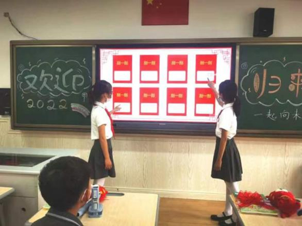 502班的返校儀式“愛意濃濃”。紅色拉花讓每個孩子都喜氣洋洋;桌上班主任老師親手折的小禮盒和各式各樣的糖果讓孩子們甜蜜加倍;還有暖心“紅包”,里面有老師們一筆一畫書寫給孩子們的驚喜,更是寄托了無限的關(guān)心與激勵。
