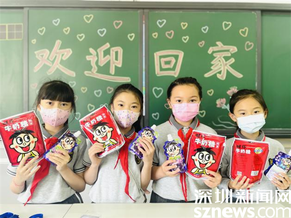 三年級各班更是個性十足,旺仔、禮物袋、可吸果凍一應(yīng)俱全,孩子期盼的心被滿滿的愛充斥著?!皩W(xué)校就是我的家!”