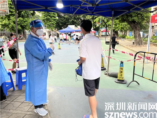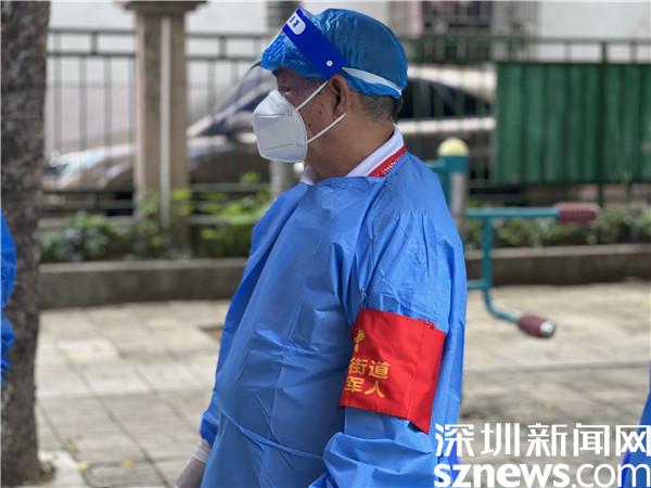 每到下午4點(diǎn),羅湖區(qū)翠竹街道龍屋小區(qū)的籃球場上,都有陸陸續(xù)續(xù)迎來做核酸的居民,而李任平,則會提前半個(gè)小時(shí)到達(dá)現(xiàn)場準(zhǔn)備,每日如此,風(fēng)雨無阻。穿上防護(hù)服,戴上防護(hù)面罩,將“翠竹街道退役軍人”的臂章戴上,鮮紅的黨員徽章別在胸前,李任平就開始站在核酸檢測點(diǎn)卡口前,指引做核酸的居民掃碼、亮碼,維持秩序。