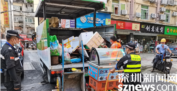社區(qū)黨委書記張廣華作為草埔東多年的“老書記”,深知九門地“肉菜巷”哪里堆放多、哪家問題多、問題癥結在哪里?!凹纫獔詻Q果斷,又要合理合法”,每次開展整治行動時,張廣華都要強調這條工作原則,提前部署人員和路線,針對“肉菜巷”及附近背街小巷進行亂堆放集中清理整治,勸導門店規(guī)范電動自行車、運貨平板車線框內擺放,執(zhí)法儀全程錄像?!俺3J悄穷^清理整治剛結束,這頭張廣華已經化身‘掃地僧’了。”一名社區(qū)工作人員接受采訪時表示?!八谖拿鞒鞘袆?chuàng)建巡查過程中,除了指導社區(qū)工作人員,還隨時隨地清理垃圾、整治飛線,清除破損廣告。”