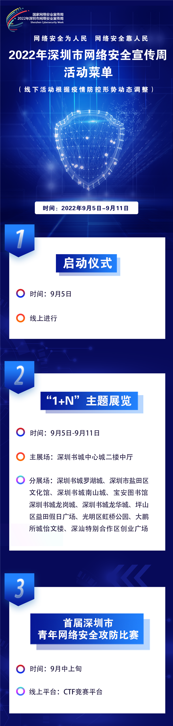 據(jù)介紹,2022年羅湖區(qū)網(wǎng)絡(luò)安全宣傳周將采取線上與線下相結(jié)合、傳統(tǒng)媒體與新媒體齊發(fā)力的方式,圍繞“3+N”的形式開展:“3”包括舉辦一場主題展覽、拍攝一批微電影及策劃一系列新媒體創(chuàng)意作品,“N”包括各單位圍繞網(wǎng)絡(luò)安全宣傳周開展的一系列活動。