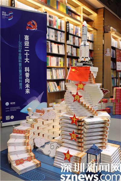 在科普月期間,羅湖書城在一樓“長盒子”空間,特別打造了“科創(chuàng)科普 兩翼齊飛”主題教育展。展覽圍繞“中國這十年科技創(chuàng)新交出亮眼成績單”“紀(jì)念科普法頒布20周年”兩大重要節(jié)點(diǎn),策劃了“科技創(chuàng)新”“科普法治”“互動學(xué)習(xí)”三大內(nèi)容板塊,集中展示中國科技發(fā)展報告、《中華人民共和國科學(xué)技術(shù)普及法》《深圳經(jīng)濟(jì)特區(qū)科學(xué)技術(shù)普及條例》等內(nèi)容,圖文并茂地講述了中國科技發(fā)展成果和中國科普工作成果。