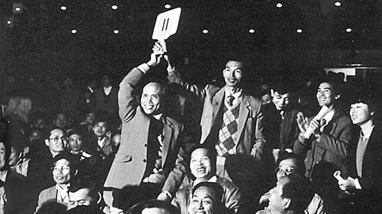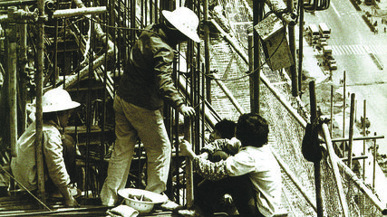 創(chuàng)造“三天一層樓”的“深圳速度”的國(guó)貿(mào)大廈工人