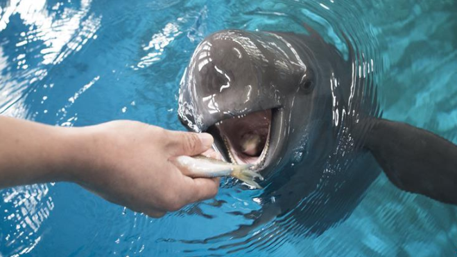 在中科院水生所武漢白鱀豚館里,生活著6頭長江江豚。 長江江豚是一種古老的水生哺乳動(dòng)物,在地球生活已有2500萬年,被稱為長江生態(tài)的“活化石”,僅分布于長江中下游干流及與之相連的鄱陽湖、洞庭湖等水域。