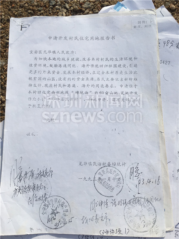 1993年龍華民治村委樟坑村申請(qǐng)開發(fā)村民住宅用地的報(bào)告書