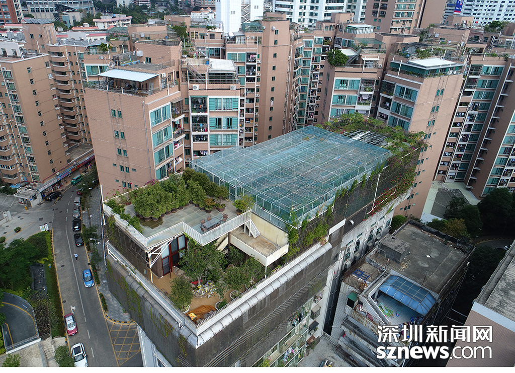 在漁民村許多高層小區(qū)樓底,不少綠色植物布置在其中,遠遠望去如同一座空中花園