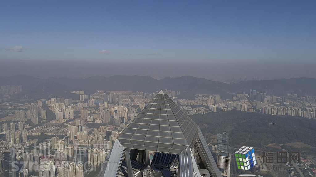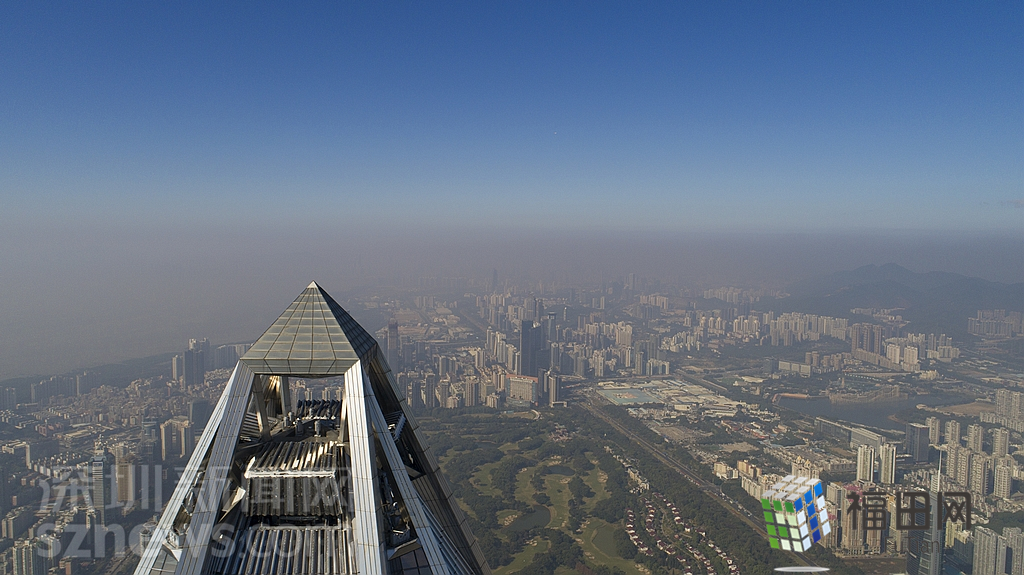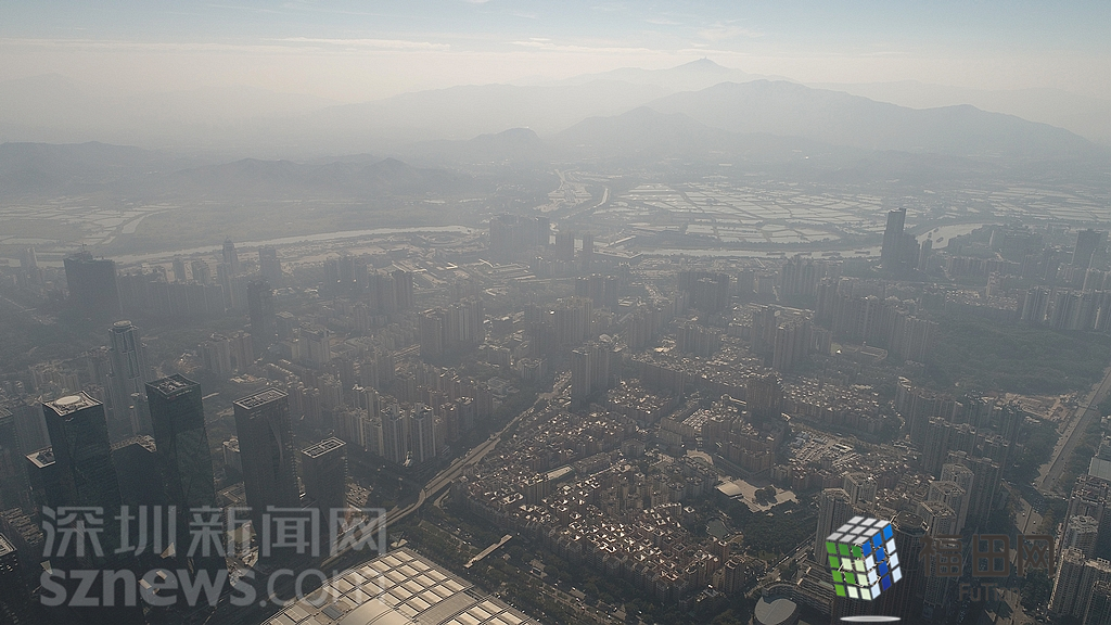 1月18日上午,記者操控?zé)o人機(jī)俯瞰深圳中心區(qū)發(fā)現(xiàn),灰霾將天空“割裂”成一道涇渭分明的界線,把城市籠罩得如同一個(gè)充滿霧靄的森林。從平安金融大廈的上空遠(yuǎn)眺,西南面的深圳灣在灰霾的籠罩下變成了一片“沙漠”,東面的京基一百幾乎被灰霾“吞沒”,北邊平時(shí)肉眼可看的梅林山也因?yàn)槟芤姸容^低變得若隱若現(xiàn),南面的米埔濕地也被云遮霧繞。