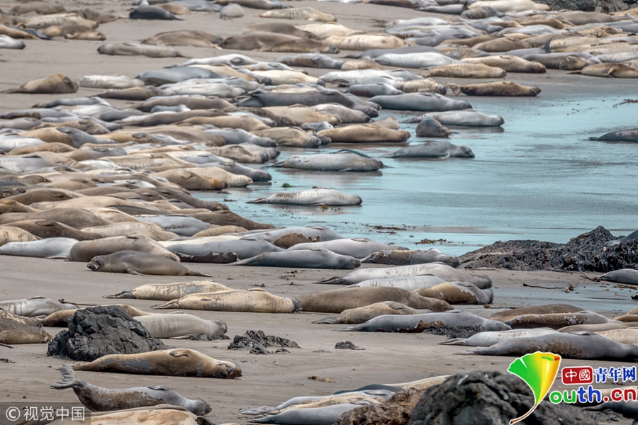美國加州,阿根廷攝影師Lucio Moujan鏡頭下的圣西蒙海灘,整個海灘被陽光下午睡的象海豹占領。攝影師說道,“那里大概有數(shù)百只象海豹吧,我不知道具體數(shù)目,但是那有一大群。