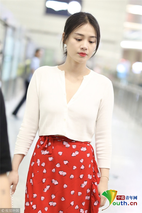 2018年7月31日,“水月”馬思純從北京飛往上?,F(xiàn)身機(jī)場,她身穿草莓圖案大紅裙,手提櫻桃小竹籃,造型清新甜美,搭配深V白襯衫,美胸若隱若現(xiàn),平添小性感。