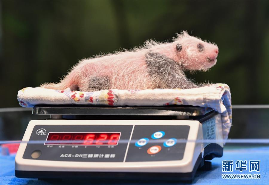 8月12日,在廣州長(zhǎng)隆野生動(dòng)物世界華南大熊貓繁育基地,新生大熊貓“婷仔”接受體檢稱重。 新華社記者 劉大偉 攝