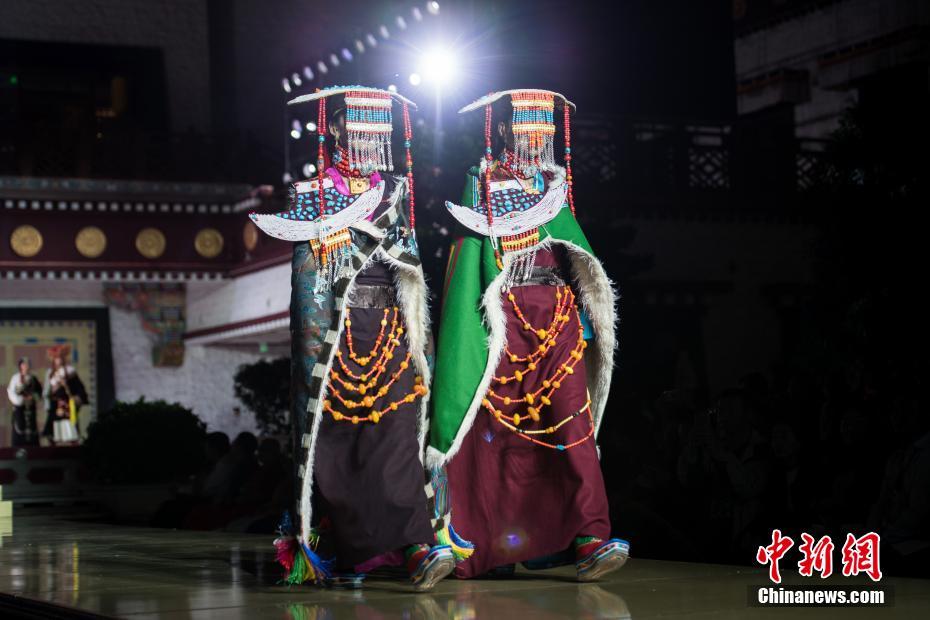 8月12日晚,由西藏職業(yè)技術(shù)學(xué)院與北京服裝學(xué)院共同打造的“凈美雪頓·美好生活”西藏民族服裝與服飾展演活動(dòng)在拉薩舉行?,F(xiàn)場(chǎng)通過(guò)傳統(tǒng)篇、現(xiàn)代篇與未來(lái)篇三個(gè)篇章,展演了藏族傳統(tǒng)服裝26套,設(shè)計(jì)創(chuàng)新服裝58套,共計(jì)84套服裝。圖為模特展示藏族傳統(tǒng)服飾。中新社記者何蓬磊 攝