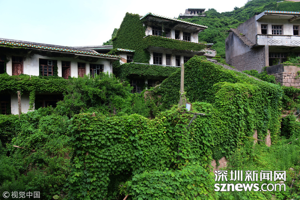 2018年8月8日,浙江舟山,掩映在綠色植被中的“無人村”,暑假里日均接待游客5、600人,高峰期每天到訪者達千人。