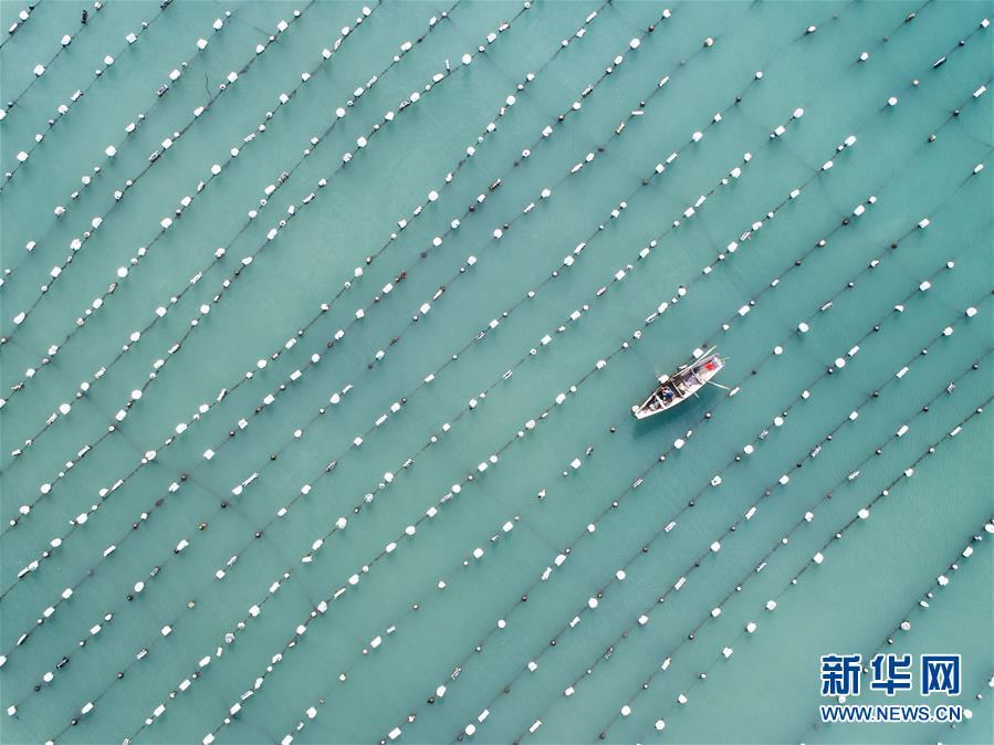 8月18日,南麂島馬祖岙海灣內(nèi),養(yǎng)殖戶乘船在貽貝養(yǎng)殖區(qū)內(nèi)作業(yè)(無人機拍攝)。進入8月,浙江省溫州市平陽縣南麂鎮(zhèn)海域上大片的大黃魚、貽貝等特色海產(chǎn)品養(yǎng)殖區(qū)域迎來豐收季節(jié),養(yǎng)殖戶們駕駛漁船在養(yǎng)殖區(qū)海域進行打撈收獲,在碧海藍天下構(gòu)成了一幅“海上牧場”的美麗豐收景象。近年來,南麂鎮(zhèn)政府引導(dǎo)漁民養(yǎng)殖戶充分發(fā)揮“靠海吃?!钡馁Y源優(yōu)勢,大力發(fā)展海洋養(yǎng)殖經(jīng)濟和海島旅游經(jīng)濟,實現(xiàn)了南麂由“生態(tài)美”向“產(chǎn)業(yè)美”,“產(chǎn)業(yè)美”向“經(jīng)濟美”的轉(zhuǎn)變。同時該鎮(zhèn)堅持以大黃魚、貽貝等為特色產(chǎn)業(yè)支撐,精準(zhǔn)發(fā)展高效海洋養(yǎng)殖業(yè),重點培養(yǎng)一批新型職業(yè)漁民,依靠專業(yè)技術(shù)支持,實現(xiàn)深海仿生養(yǎng)殖,讓好生態(tài)造就好品質(zhì),重點打造南麂養(yǎng)殖品牌,組建營銷網(wǎng)絡(luò),拓展特色海產(chǎn)品市場。新華社記者 徐昱攝