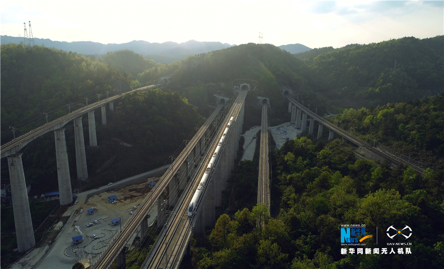 貴州省地處中國西南腹地,全省高原山地居多,因此高鐵建設(shè)的橋隧占比較高。在貴陽市烏當(dāng)區(qū)新添寨,高鐵滬昆線、貴廣客運(yùn)專線、貴開城際客運(yùn)專線的隧道和橋梁交織在一起,形成“五洞五橋”并行,形似“五龍出?!钡膲延^景象(3月29日攝)。新華網(wǎng)盧志佳 攝