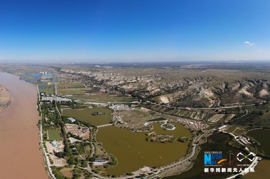 航拍黃河托克托段兩岸風光,東岸是魚米之鄉(xiāng)。新華網 張偉 攝
