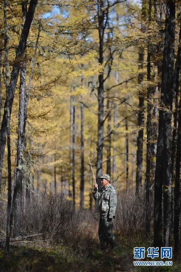9月18日,在內(nèi)蒙古大興安嶺根河林業(yè)局約安里林場(chǎng),林場(chǎng)職工廉立臣與其他林場(chǎng)職工通過對(duì)講機(jī)溝通尋找馴鹿的情況。新華社記者鄒予攝
