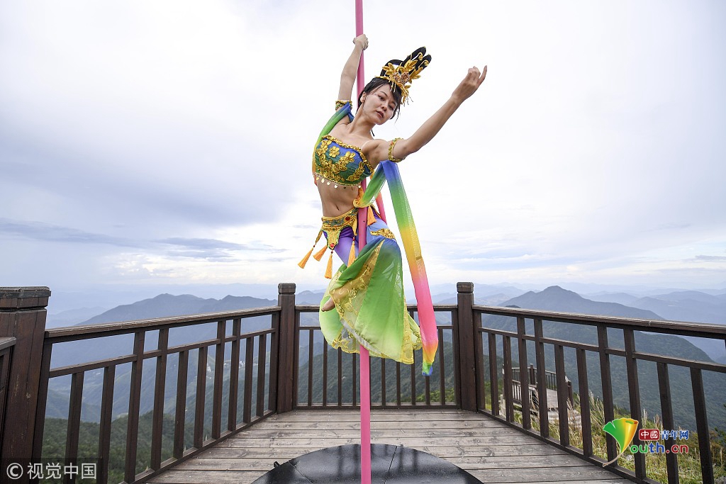 長(zhǎng)三角第一高峰上演高空鋼管舞 舞者 ...
