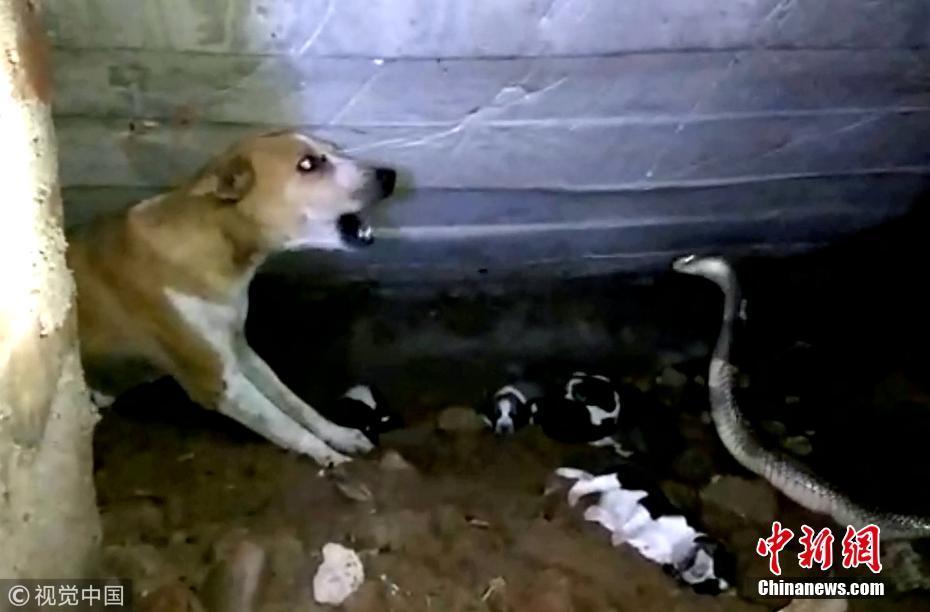 9月20日訊(具體拍攝時間不詳),印度奧里薩邦,一只寵物狗勇敢地挽救了新生幼犬的生命,它擊退了一條可怕的眼鏡蛇。面對一條巨大的斑點眼鏡蛇——世界上最毒的蛇之一——這位新媽媽勇敢保護僅出生兩天的幼崽。但不幸的是,盡管狗狗盡了最大的努力,蛇還是在救援人員救出幼犬之前仍殺死了4只小狗。圖片來源:視覺中國