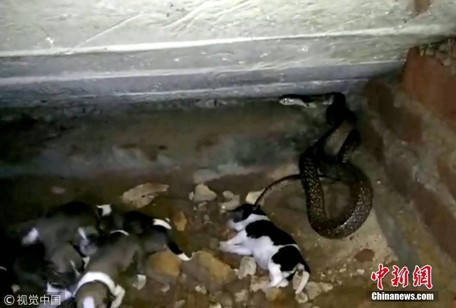 9月20日訊(具體拍攝時間不詳),印度奧里薩邦,一只寵物狗勇敢地挽救了新生幼犬的生命,它擊退了一條可怕的眼鏡蛇。面對一條巨大的斑點(diǎn)眼鏡蛇——世界上最毒的蛇之一——這位新媽媽勇敢保護(hù)僅出生兩天的幼崽。但不幸的是,盡管狗狗盡了最大的努力,蛇還是在救援人員救出幼犬之前仍殺死了4只小狗。圖片來源:視覺中國