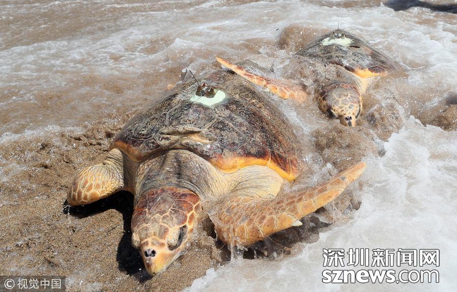 韓國水產部門舉辦海龜放生儀式 海龜背“天線”重歸大海
