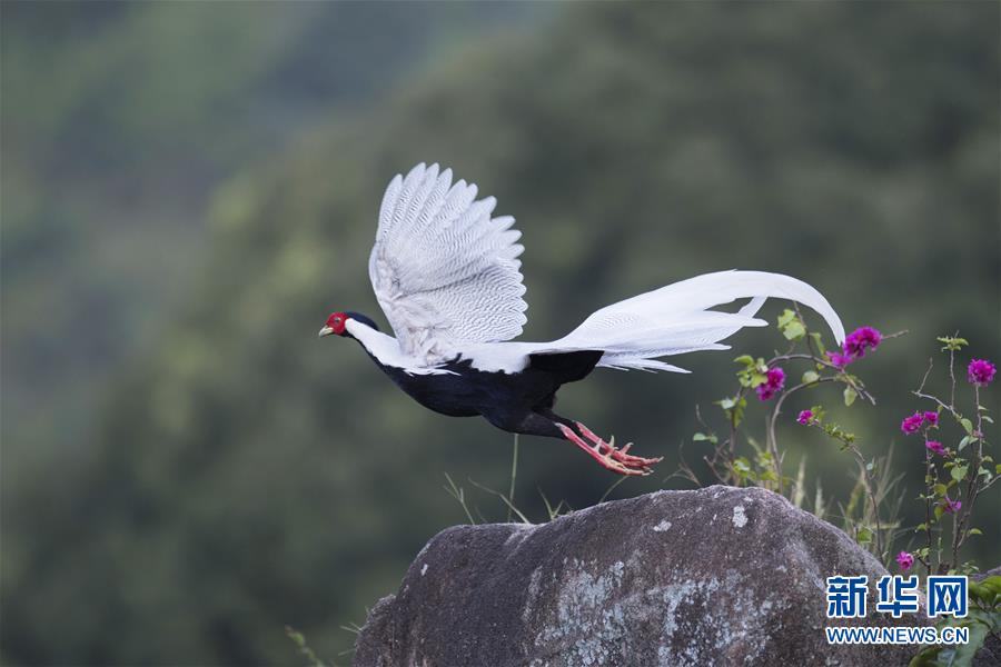 9月27日,一只白鷴在南靖縣鵝仙洞自然保護(hù)區(qū)飛翔。