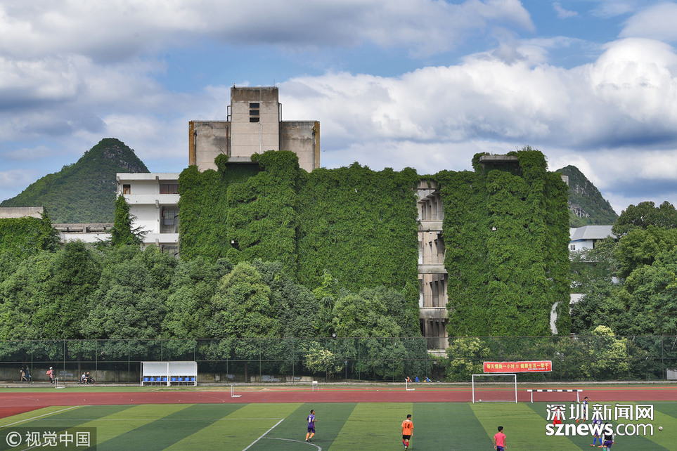 2018年6月20日,貴陽,貴州大學現(xiàn)12層樓近50米高綠色“巨瀑”。據(jù)悉,這是該校的老師們在26年前栽種的300多棵爬山虎,如今爬滿12層高的圖書館大樓,猶如“綠色城堡”。