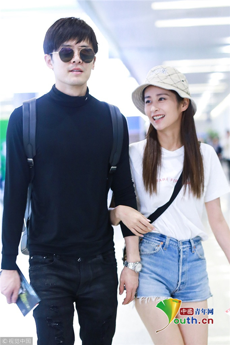 2018年9月26日,上海,穎兒、付辛博夫婦亮相機場。穎兒身穿白T恤和牛仔短褲露出纖細美腿十分養(yǎng)眼,一路挽著老公的手十分恩愛甜蜜,日前,穎兒還在節(jié)目上痛哭述說自己與付辛博新婚相處的苦楚。