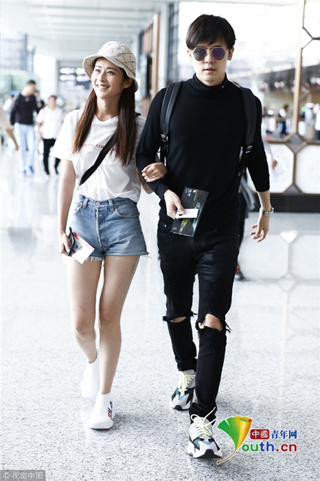 2018年9月26日,上海,穎兒、付辛博夫婦亮相機場。穎兒身穿白T恤和牛仔短褲露出纖細美腿十分養(yǎng)眼,一路挽著老公的手十分恩愛甜蜜,日前,穎兒還在節(jié)目上痛哭述說自己與付辛博新婚相處的苦楚。