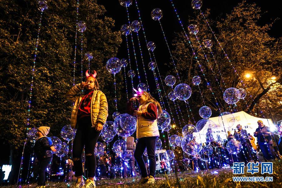 9月28日,游客在波蘭羅茲市中心舉辦的2018“舞動(dòng)”燈光節(jié)上游玩。2018“舞動(dòng)”燈光節(jié)于9月28日至30日在波蘭中部交通樞紐城市——羅茲市舉行,各式各樣的光影表演在這座城市的各個(gè)角落同時(shí)上演,組成了一場如夢如幻的大型燈光秀。新華社記者陳序攝