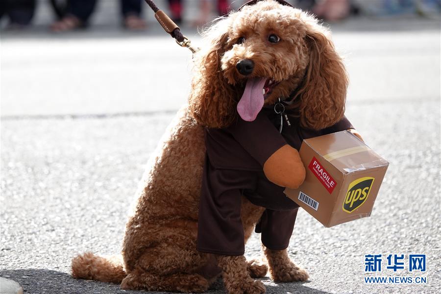 9月29日,在美國(guó)加利福尼亞州伯林蓋姆市,一只寵物狗參加大游行活動(dòng)。美國(guó)加州舊金山灣區(qū)的伯林蓋姆市29日舉行寵物狗大游行活動(dòng)。新華社記者吳曉凌攝