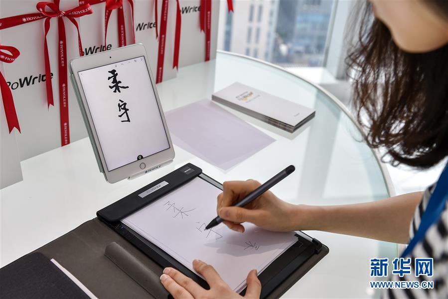 深圳柔宇科技工作人員演示基于柔性電子傳感技術(shù)的智能手寫板(6月13日攝)。新華社記者 毛思倩 攝