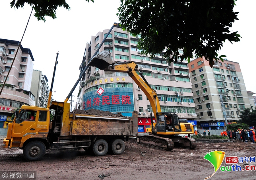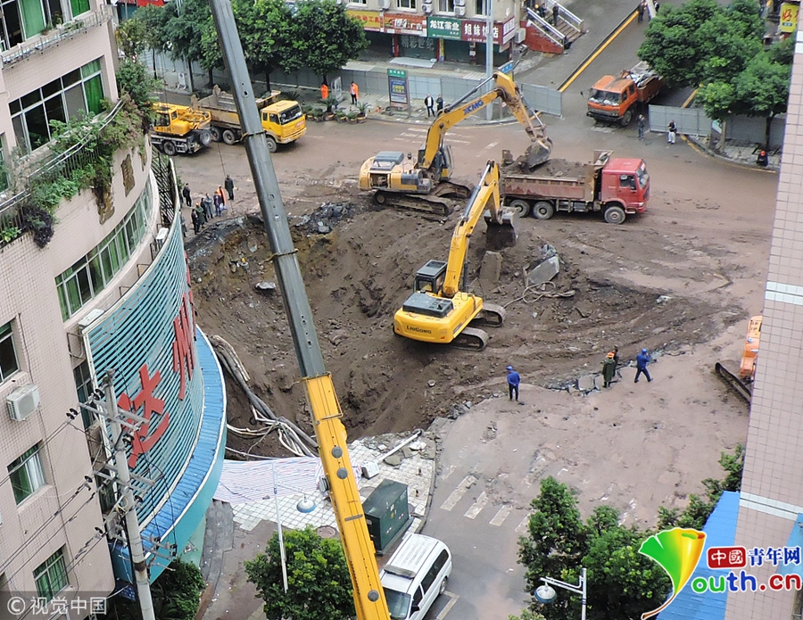 中國青年網(wǎng)北京10月9日電 2018年10月8日消息,四川達(dá)州。10月8日從四川省達(dá)州市達(dá)川區(qū)委宣傳部獲悉,7日14時(shí)30分左右,達(dá)川區(qū)東環(huán)南路103號(hào)人行道路面發(fā)生塌陷險(xiǎn)情,經(jīng)調(diào)取視頻監(jiān)控和走訪周邊群眾,救援人員初步判斷疑似有4人掉入坑中。圖片作者:視覺中國