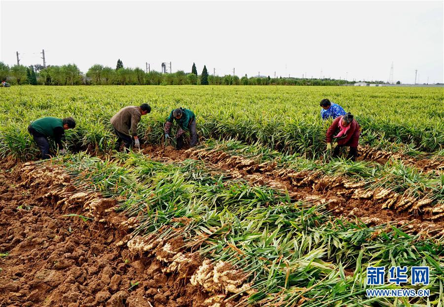 10月9日,秦皇島市撫寧區(qū)留守營(yíng)鎮(zhèn)桑園村農(nóng)民在收獲生姜。 近年來(lái),河北省秦皇島市撫寧區(qū)在農(nóng)業(yè)結(jié)構(gòu)調(diào)整過(guò)程中,引導(dǎo)當(dāng)?shù)剞r(nóng)民種植優(yōu)質(zhì)無(wú)公害生姜,并安排農(nóng)業(yè)技術(shù)員定期到田間指導(dǎo)農(nóng)民對(duì)生姜進(jìn)行標(biāo)準(zhǔn)化管理。據(jù)介紹,今年該縣生姜種植面積1萬(wàn)多畝,預(yù)計(jì)產(chǎn)生姜5萬(wàn)噸,種植戶(hù)每畝純收入達(dá)1萬(wàn)多元。 新華社記者 楊世堯 攝