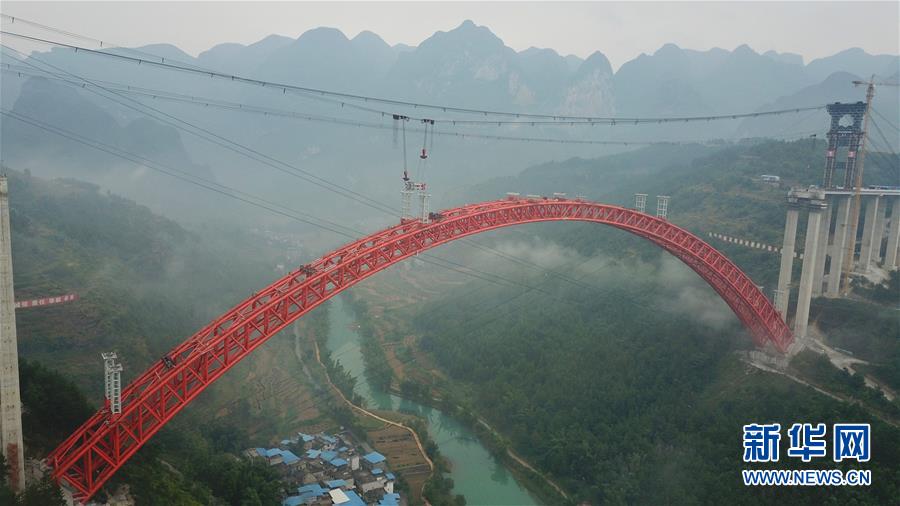 9月12日使用無人機拍攝的大小井特大橋。 目前,橫跨在貴州省羅甸縣大井河上的大小井特大橋建設(shè)進入沖刺階段。大小井特大橋全長1.5公里,主跨450米,是世界最大跨徑上承式鋼管混凝土拱橋。據(jù)了解,該橋是平塘至羅甸高速公路關(guān)鍵性工程,對打通貴州“斷頭路”,助推滇黔桂石漠化片區(qū)脫貧攻堅具有重要意義。 新華社記者劉續(xù)攝