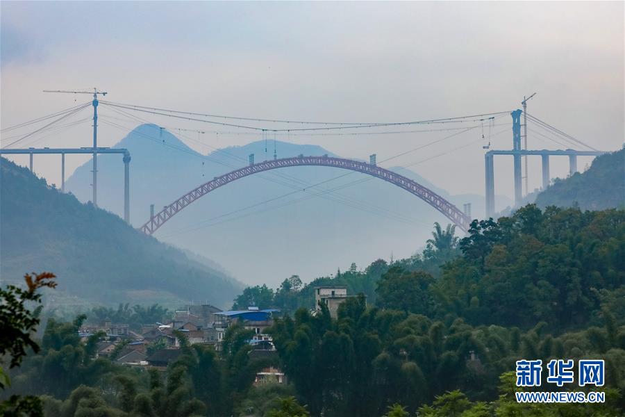無(wú)人機(jī)拍攝的大小井特大橋(9月12日攝)。目前,橫跨在貴州省羅甸縣大井河上的大小井特大橋正在建設(shè)中。該橋全長(zhǎng)1.5公里,主跨450米。新華社記者劉續(xù)攝