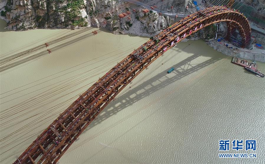 9月28日無人機拍攝的川藏鐵路拉林段重點標志性工程藏木特大橋。 當日,隨著最后一節(jié)鋼管拱的對位和鎖定完畢,川藏鐵路拉林段藏木特大橋成功合龍,標志著大橋主體結構施工取得了關鍵性勝利。藏木特大橋由中國中鐵廣州局集團承建,拱高112米,橋橫跨雅魯藏布江峽谷,水深66米。 新華社記者普布扎西攝