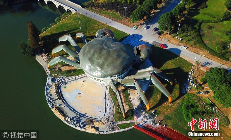 據(jù)了解,這是建造中的大閘蟹生態(tài)館,預計未來將在大閘蟹的白肚內(nèi)容納三層空間,集休閑、娛樂,以及有關(guān)大閘蟹體驗于一體的設(shè)施。圖片來源:視覺中國