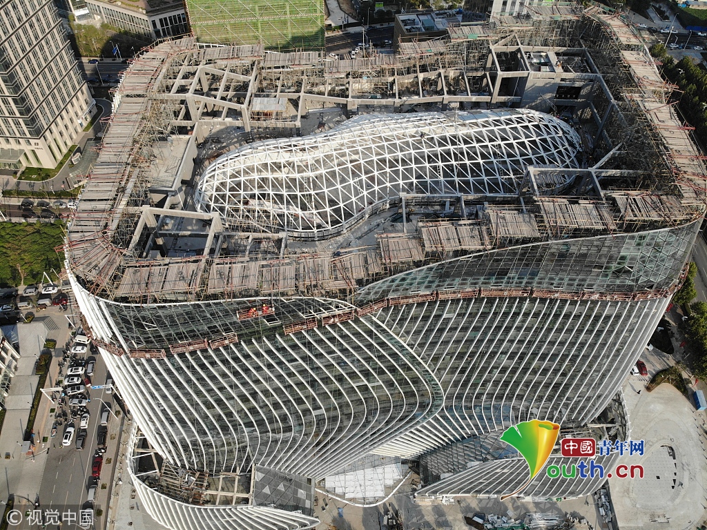 鄭州一高樓頂部鏤空 俯瞰宛若一顆花生