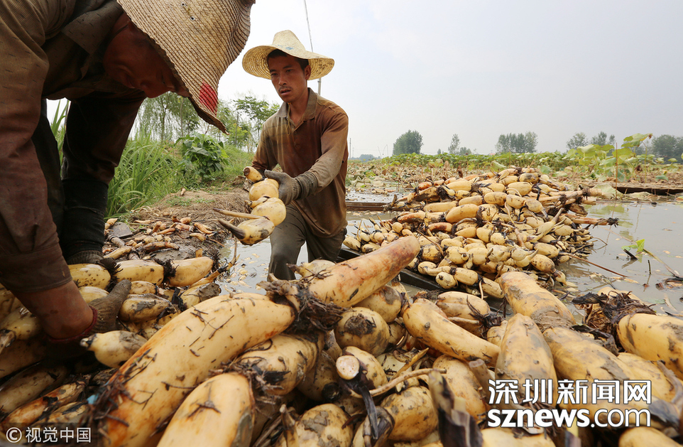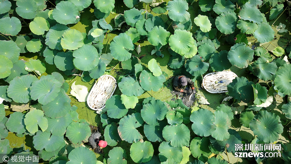 藕農(nóng)泥中“掘金” 初秋時(shí)節(jié)采藕忙