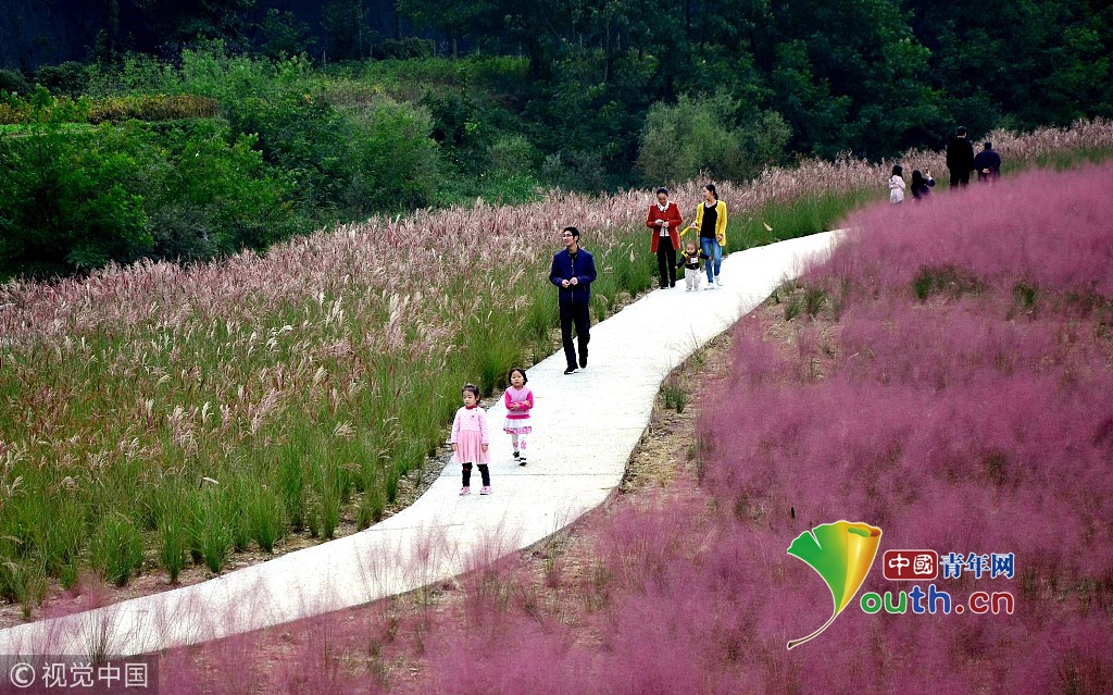 上海楊浦濱江粉黛亂子草成片盛開 美不勝收