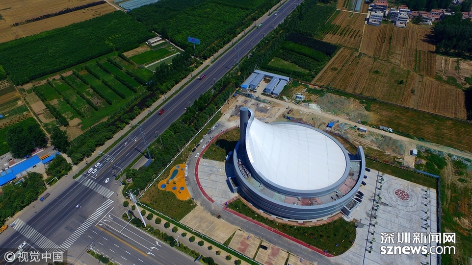 2018年6月13日,航拍河南淮陽(yáng)一座即將竣工落成的體育場(chǎng)館建筑,市民稱(chēng)酷似一個(gè)石磨盤(pán)。