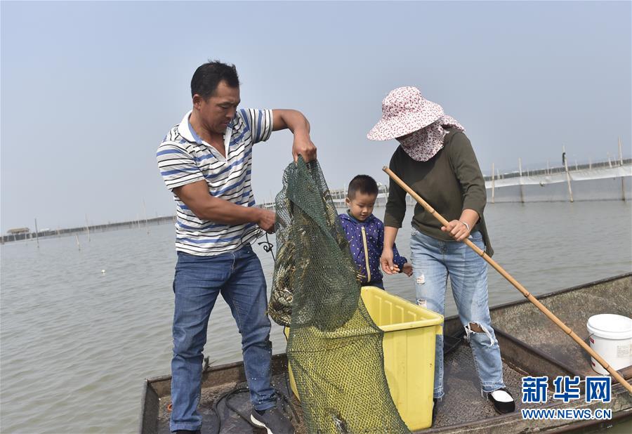 10月17日,湖州廟港人水產(chǎn)有限公司蟹農(nóng)在太湖養(yǎng)殖基地捕撈大閘蟹。 時(shí)值重陽,太湖南岸的大閘蟹開始大批量上市,迎來豐收季。浙江省湖州市近年來結(jié)合太湖水治理,提升太湖漁業(yè)資源質(zhì)量。目前,湖州太湖蟹養(yǎng)殖面積3.6萬畝左右,年產(chǎn)3000多噸。 新華社記者錢一攝
