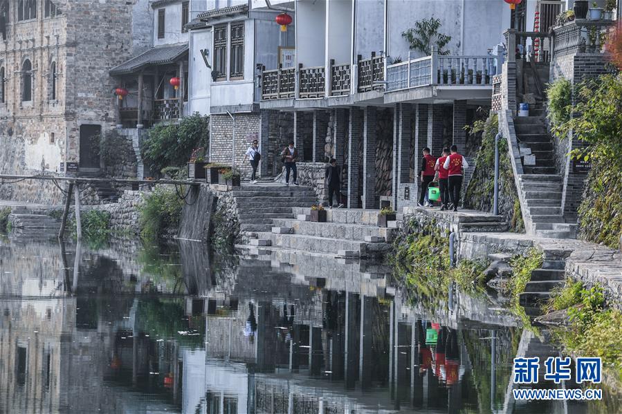 10月17日,河橋鎮(zhèn)的青年黨員們在鎮(zhèn)邊的昌南溪邊巡查,并清理兩岸的廢棄物。新華社記者 徐昱 攝