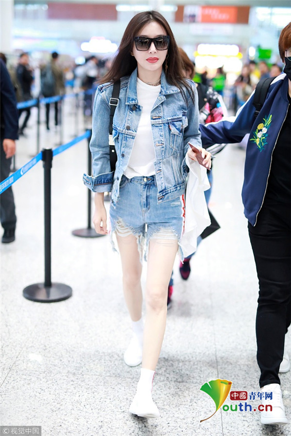 2018年10月17日,上海,秦嵐現(xiàn)身機場。她一身牛仔LOOK露出白皙長腿,雪膚紅唇美得不可方物,長發(fā)飄飄玉手撩發(fā)女神范十足。