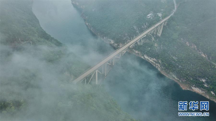 8月27日,位于貴州省甕安縣的清水河大橋云霧繚繞,景色如畫(huà)。