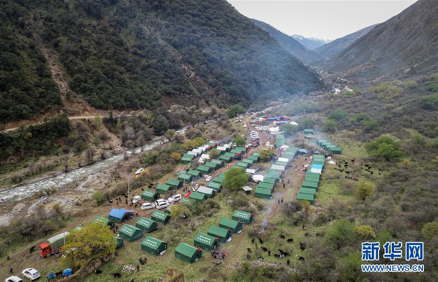 這是西藏昌都市江達(dá)縣波羅鄉(xiāng)一臨時(shí)過(guò)渡安置點(diǎn)(10月14日無(wú)人機(jī)拍攝)。