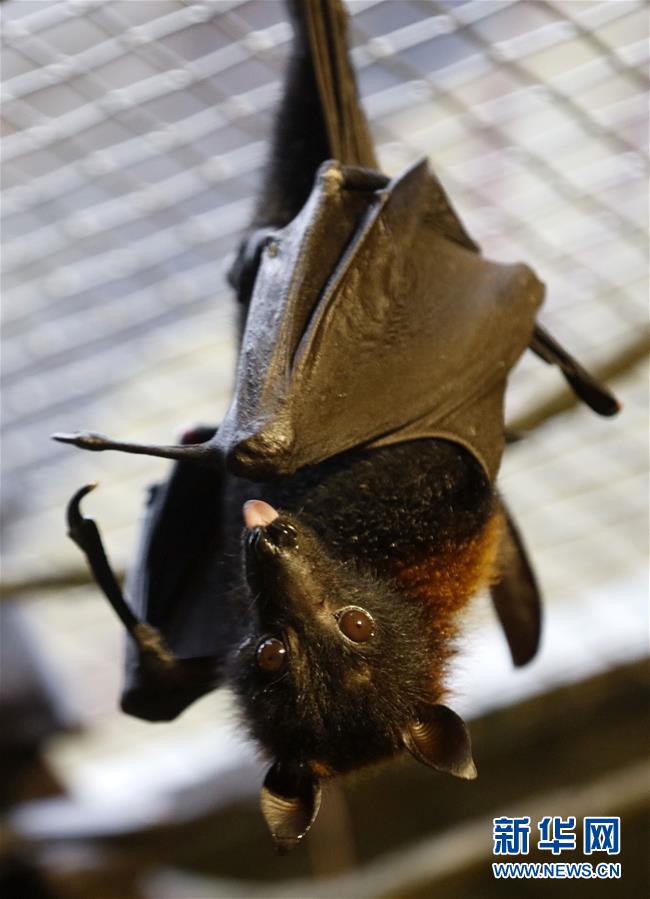 10月18日在廣州長(zhǎng)隆野生動(dòng)物世界拍攝的馬來(lái)大狐蝠。 當(dāng)日,馬來(lái)大狐蝠在廣州長(zhǎng)隆野生動(dòng)物世界首次展出。馬來(lái)大狐蝠體長(zhǎng)20至25厘米,翼幅最大近兩米,主要分布在印度尼西亞與馬來(lái)西亞等地。 新華社記者 黃國(guó)保 攝